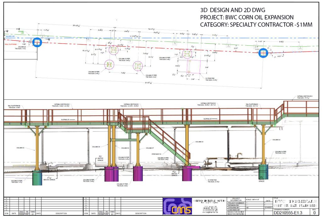 Complete Mechanical Services (CMS) successfully completed the BWC Terminals Refined Corn Oil Expansion Project in Cincinnati, Ohio. The project involved extensive in-house services, including scanning, design, civil work, fabrication, and installation of a complex platform and piping system. Completed within the expected timeline and budget, the project enabled the client to efficiently transload their product, granting access to new markets.
